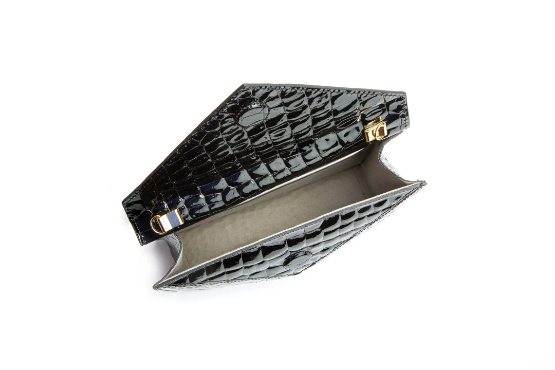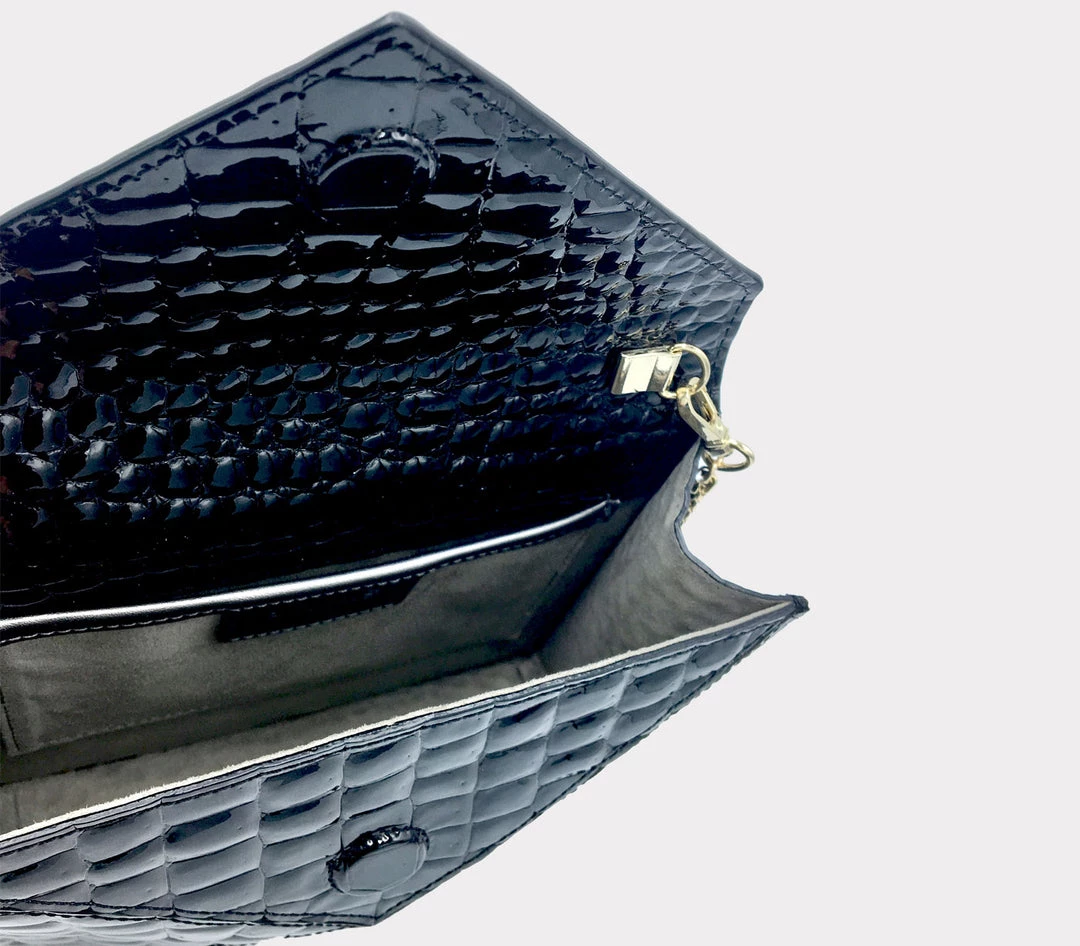 Introducing the first and all new statement clutch, ‘About Last Night’ made from 100% compressed layers of handmade paper, coated with glass and embossed to give it a surprisingly realistic faux Croc/Alligator texture. Crocodiles and alligators are farmed, slaughtered and their skins are harvested by several brands who charge thousands of dollars for a smallest of accessories made using this kind of leather.