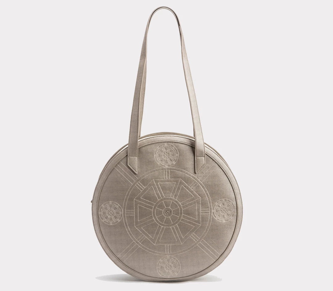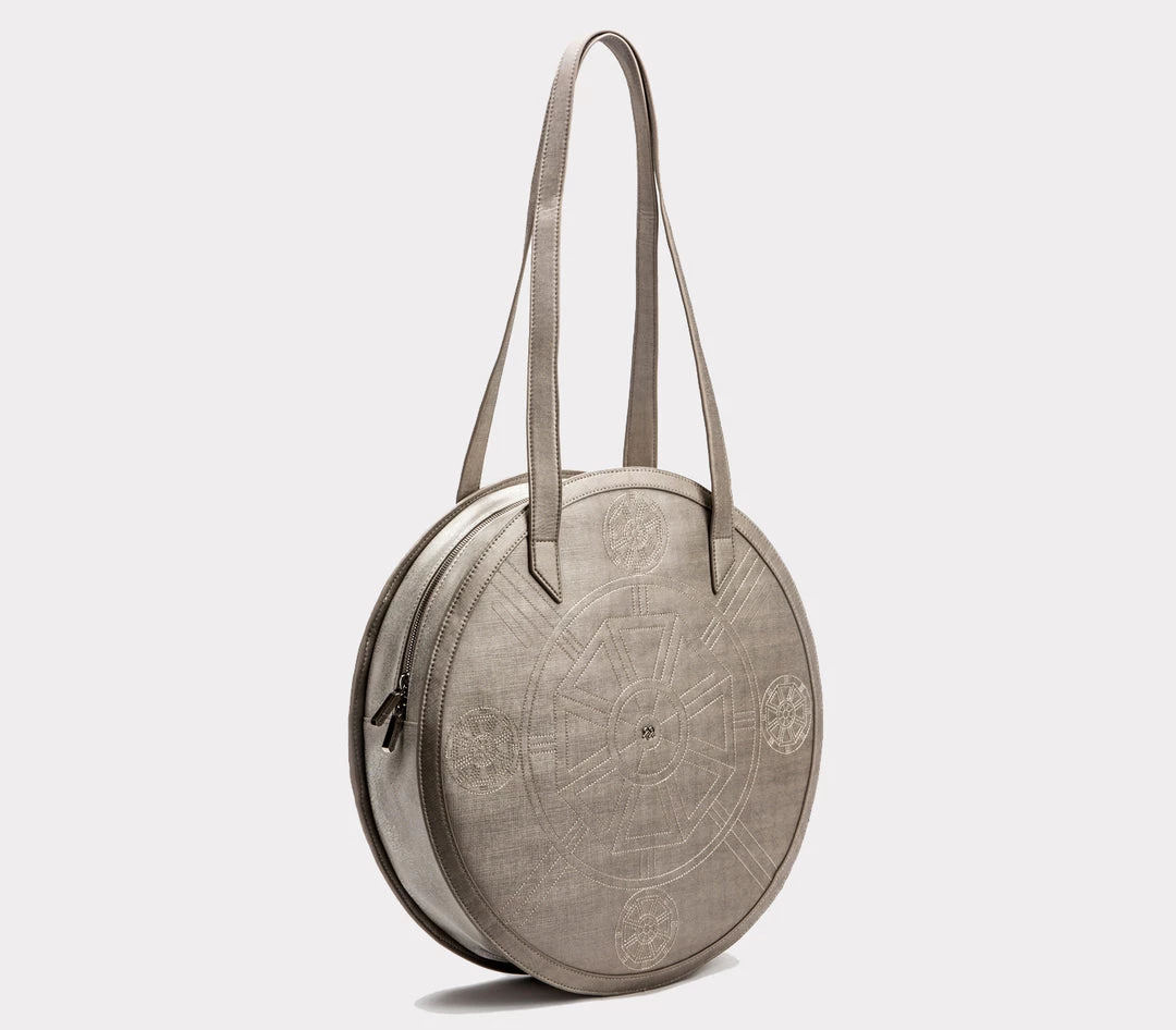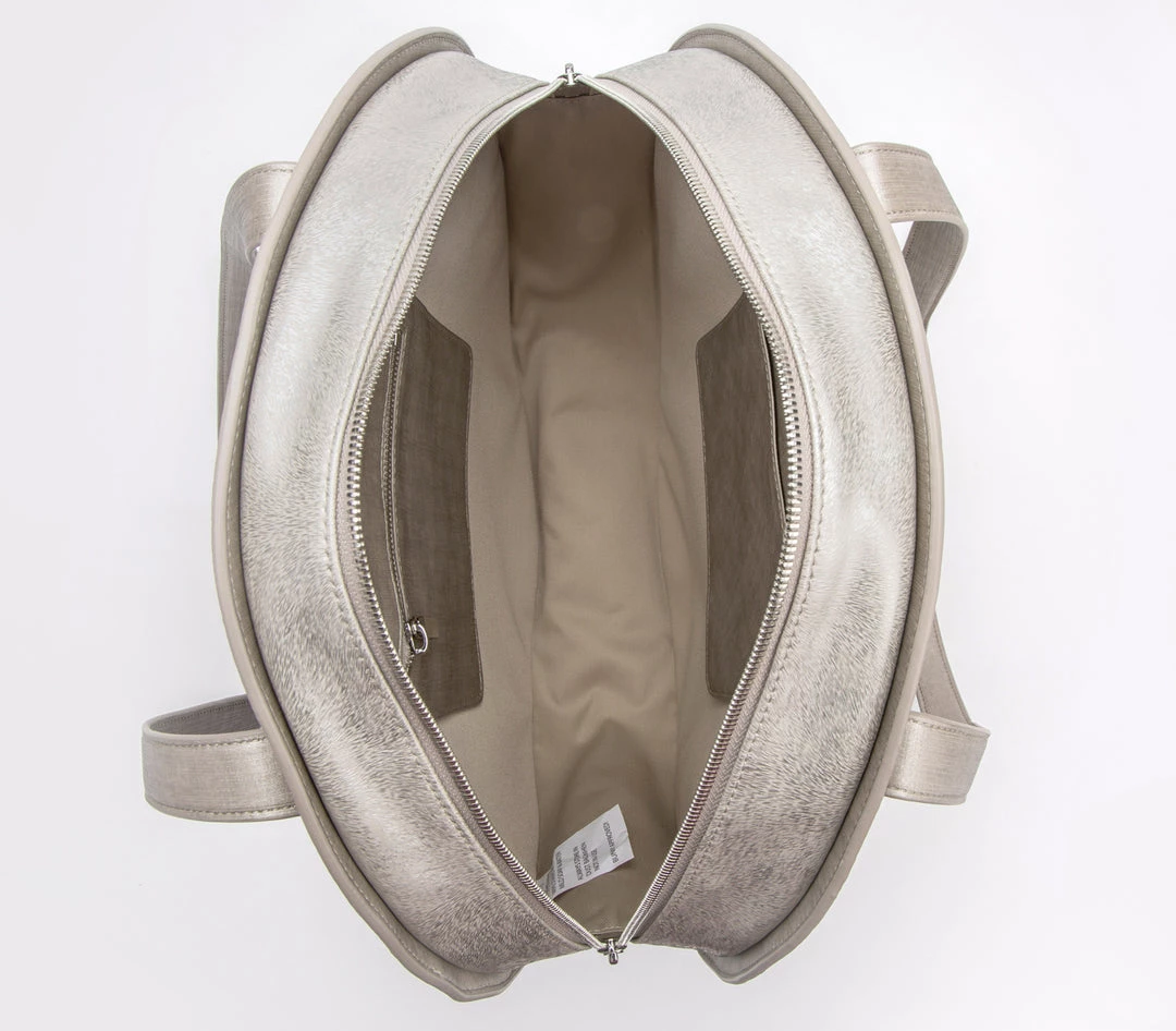 Go bold and be different with our Meghan M tote inspired by the Duchess of Sussex herself. Made from hi-tech feather light nylon coated canvas that looks and feels just like leather but outlives its cruel counterpart in many ways. It’s durable, stylish, surprisingly roomy and will surely turn many heads as you walk down the street.Seen here in whimsical oxidized silver metallic textures.
