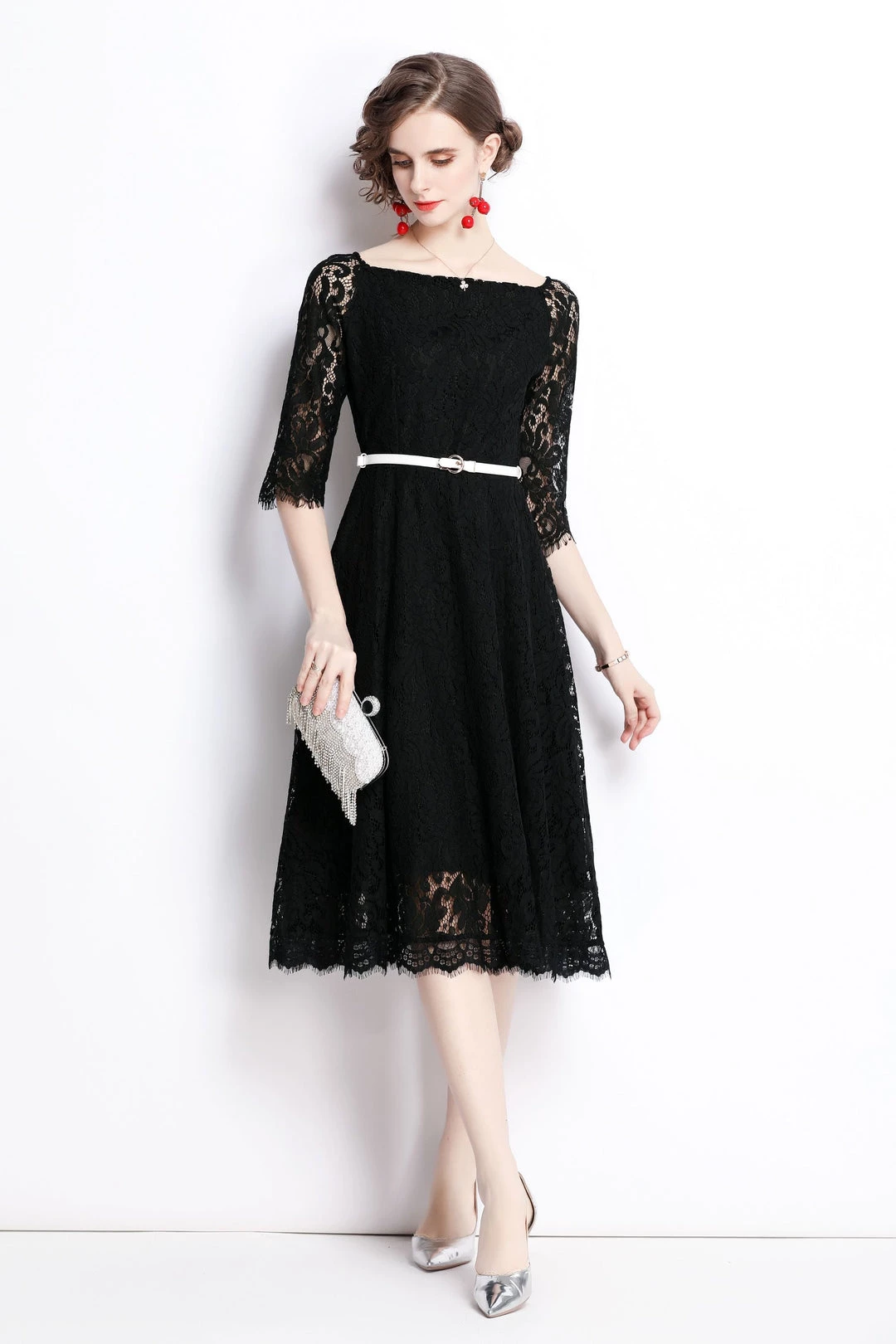 Be the first to review “Coupon ๐ Kaimilan ๐ฉ women Black Evening A-line Boatneck Elbow Sleeve Below Knee Lace Elegant ๐ Dress ๐งจ” Cancel reply