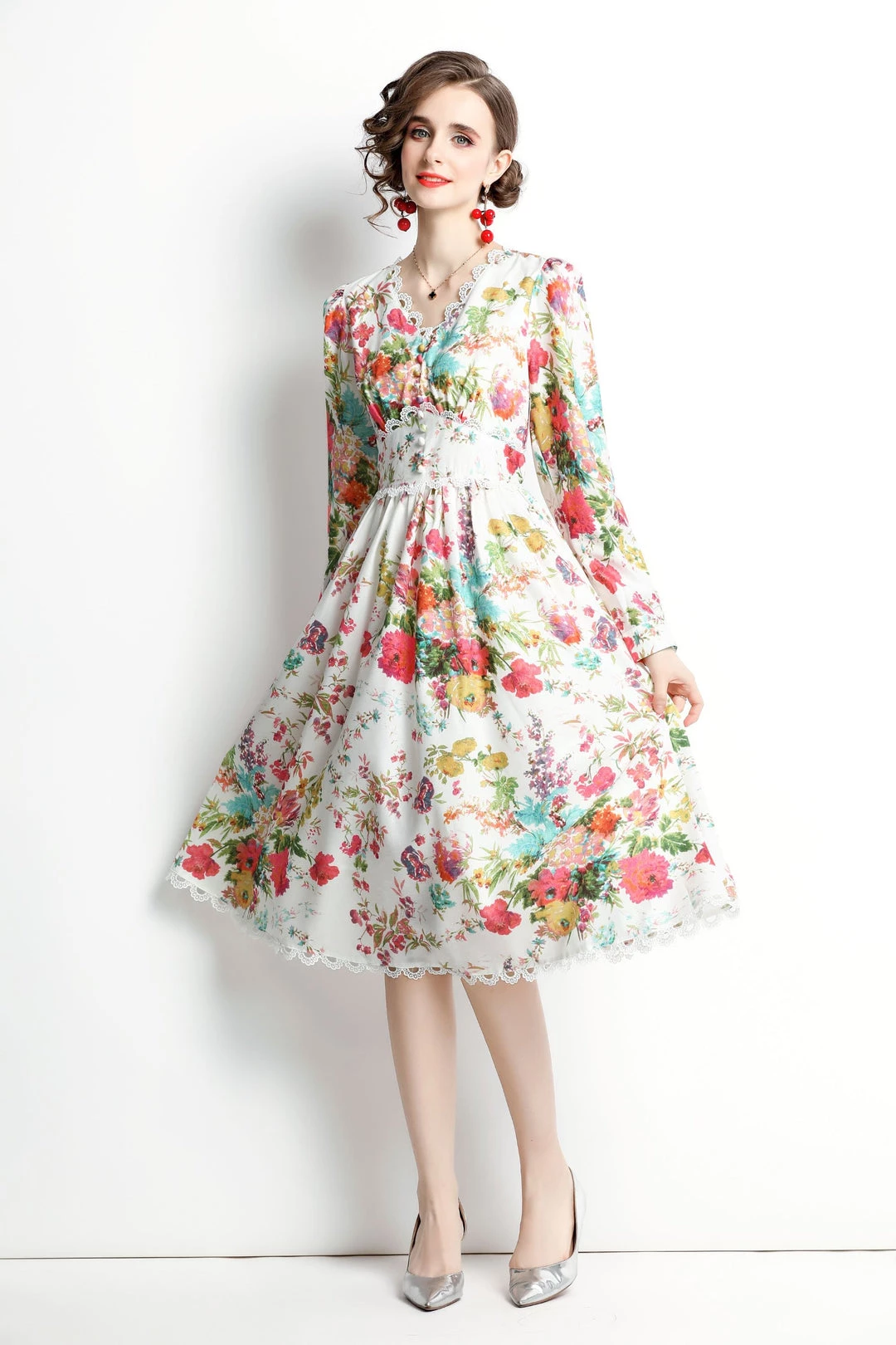 Flash Sale ๐ฅ Kaimilan ๐ฉ women Multicolor Day A-line V-neck Long Sleeve Below Knee Printed ๐ Dress ๐
