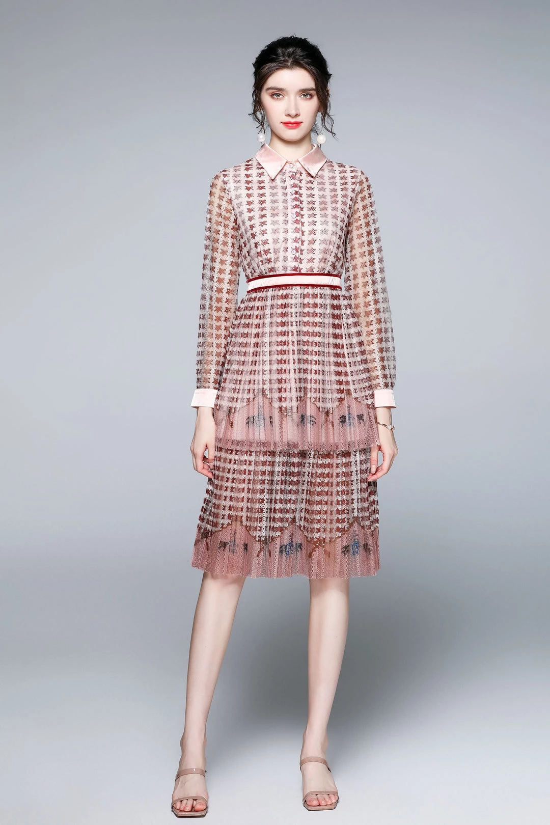 - Design details – a-line silhouette, knee length, shirt colar, long sleeve, printed, buttoned.