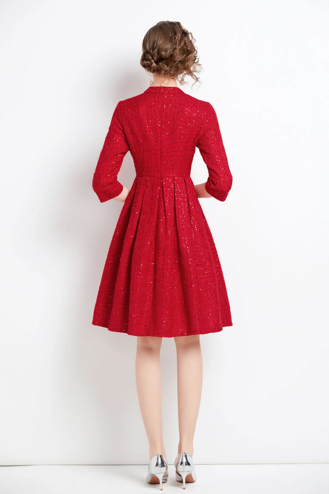 Top 10 ๐ Kaimilan ๐ฉ women Red Office Classic A-line Crewneck Elbow Sleeve Knee ๐ Dress ๐