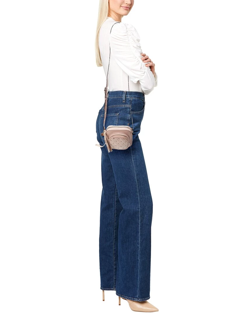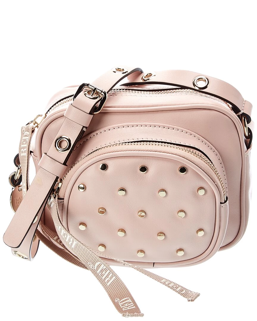 - Double Disco Leather Crossbody In Nude Leather And Gold-Tone Hardware With Exterior Pocket And Stud Embellishments